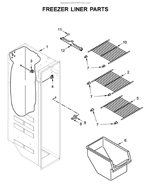 Replace a cracked, warped, or missing freezer bin to restore organized storage in your side-by-side refrigerator's freezer compartment.