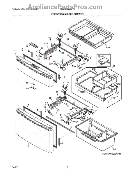 This basket assembly is the replacement storage basket that holds and organizes items inside the appliance, restoring secure support and proper circulation. It helps keep contents contained and prevents shifting or damage from a cracked or broken basket. What it does: