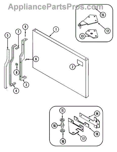 This handle frame is the trim piece that mounts around a door handle to restore the appliance's finished appearance and cover the handle's fasteners. It replaces worn or damaged trim for a clean, secure handle look. What it does: