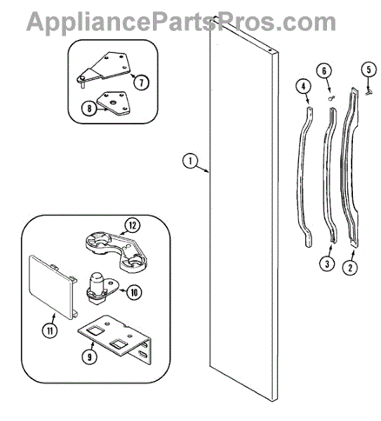 Mounting screw secures panels, brackets, and trim on refrigerators and washers. Replace when fasteners are missing, loose, stripped, or damaged.