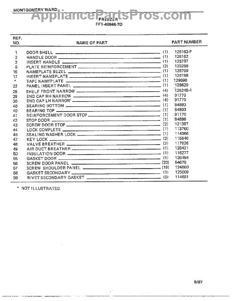 Parts for Frigidaire 40846-7D: Freezer Page 2 Parts