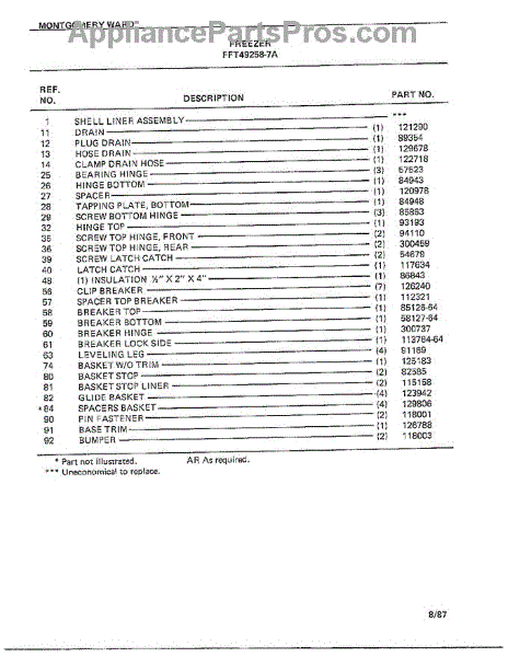 Parts for Frigidaire 49258-7A: Freezer Page 4 Parts