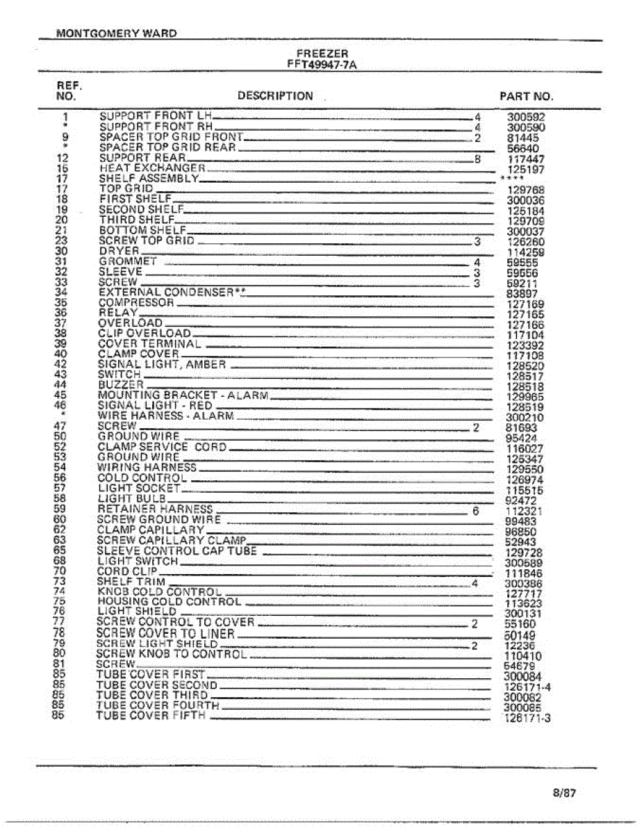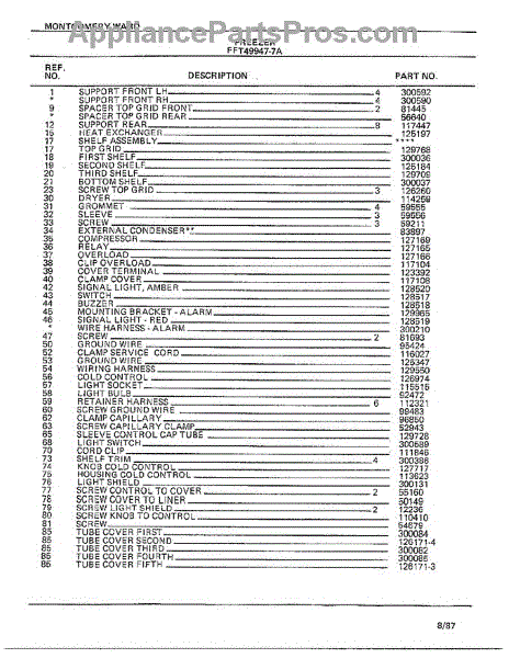 Parts for Frigidaire 49947-7A: Freezer Page 4 Parts