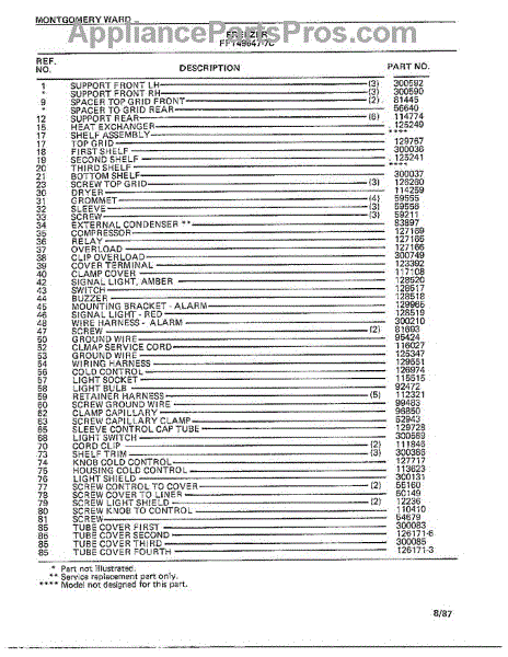This is a compressor used in several types of home appliances. The compressor is designed to take cold gas in the appliance and place it under pressure so the gas raises in temperature. It is then moved through the refrigerator system to ensure the unit stays cold throughout the appliance. This part can become damaged or malfunction, which may cause the motor to stop running, make the motor noisier, or cause the motor to never stop running.If this happens, the compressor will need to be replaced. A basic set of tools will be needed. A pair of work gloves can also be useful. First, locate the compressor as it may be in various locations depending on the appliance model. Unplug the appliance before removing the compressor. Install the new compressor using the original bolts and nuts before turning the power back on and resuming normal use.This part is sold on an individual basis. The compressor is made to be used with refrigerators, ranges, stoves, ovens, air conditioners, and freezers created by Gibson, Frigidaire, Kelvinator, Montgomery Wards, Westinghouse, Tappan, JCPenney, Universal, and Kenmore. It is an authentic OEM replacement part directly sourced from the manufacturer.