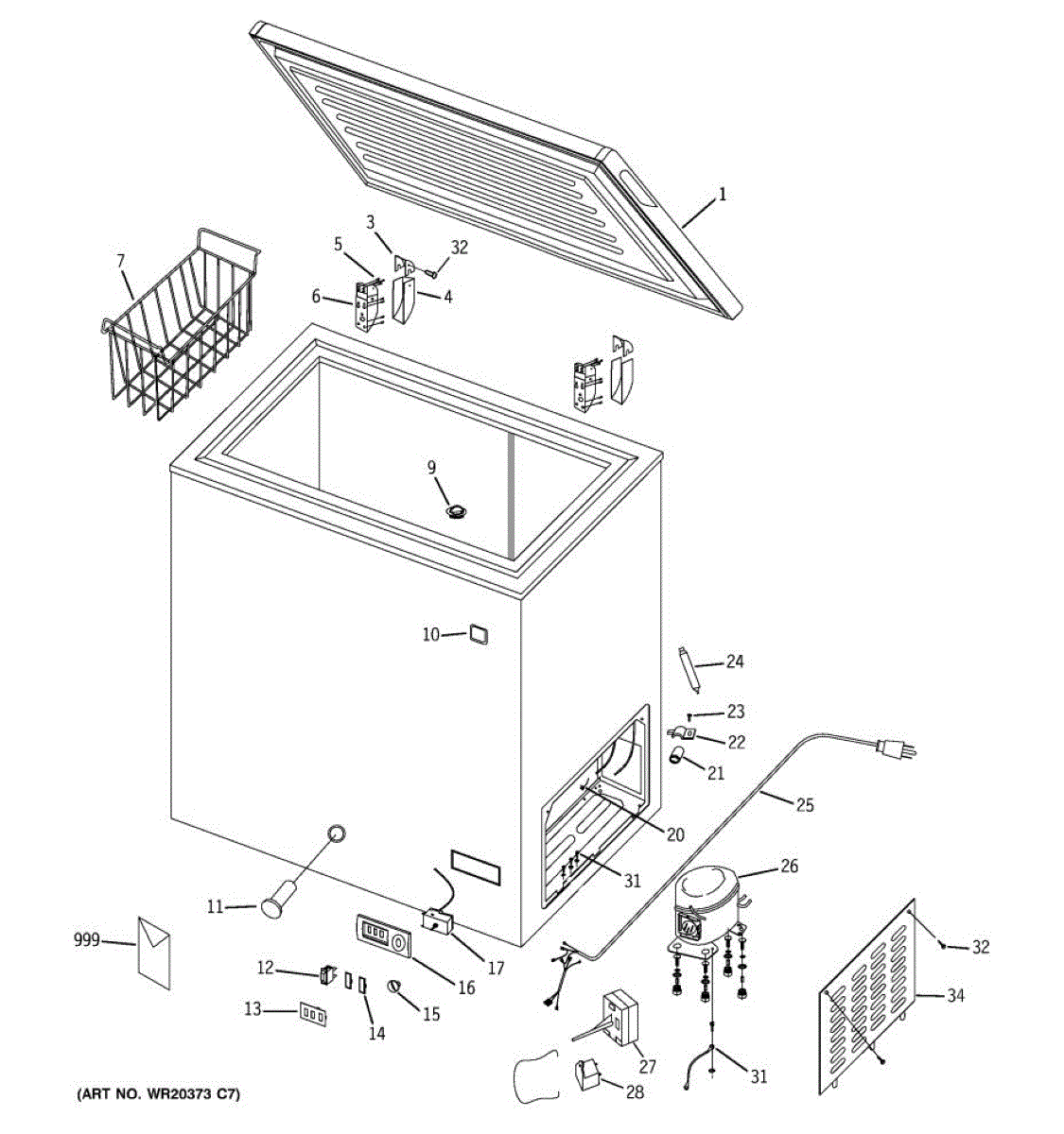 White wire basket organizes frozen items in chest freezers. Replace cracked, broken, or missing baskets to restore storage convenience and accessibility.