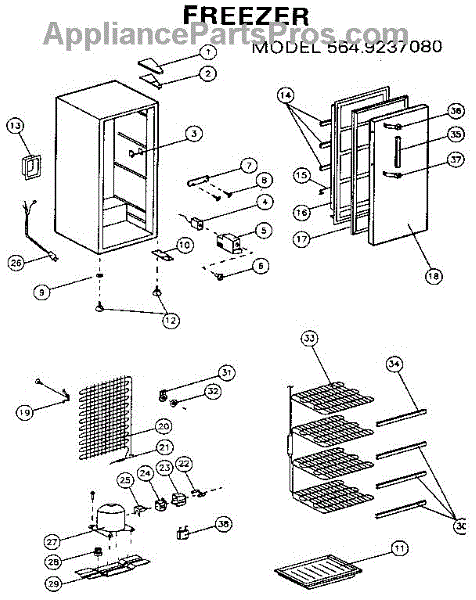 Parts for Kenmore 564.9237080 (5649237080, 564 9237080): Freezer Parts