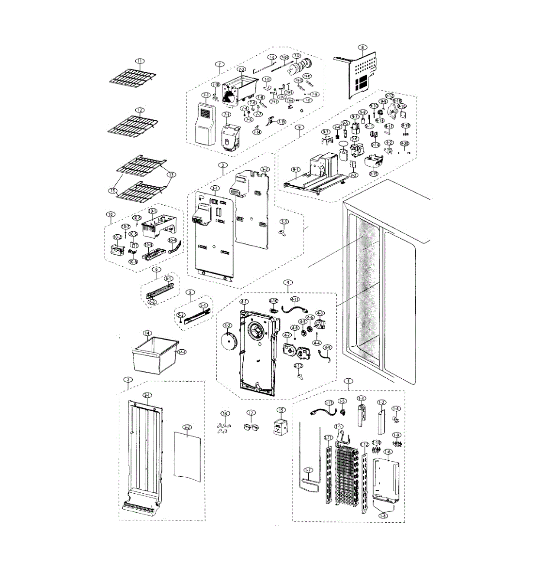 Over time, the ice bucket and auger assembly can become worn or damaged due to frequent use, ice build-up, or accidental impact. Issues with the assembly can affect the ice dispensing functionality, leading to inconvenience and potential messes.