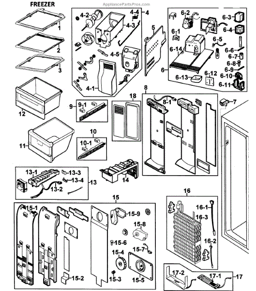 Parts for Samsung RS267LAWP/XAA-00: Freezer Parts