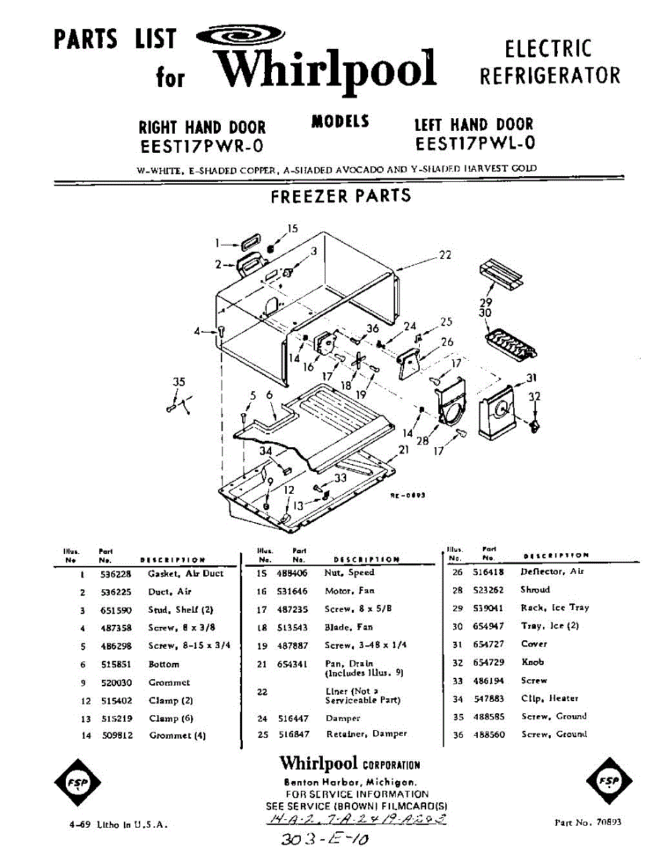 Parts for Whirlpool EEST17PWR0: 01 - Freezer Parts