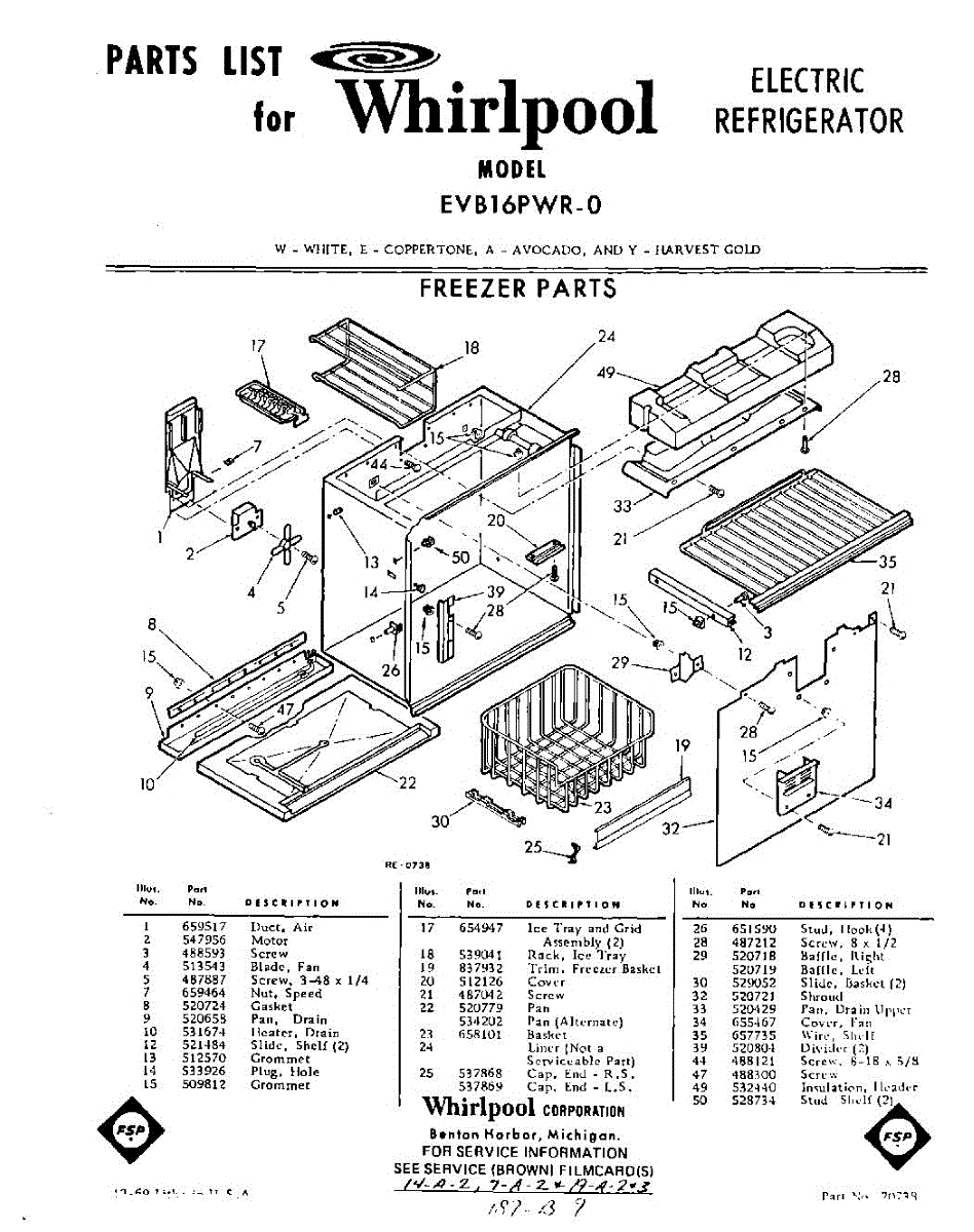 Parts for Whirlpool EVB16PWR0: 01 - Freezer Parts