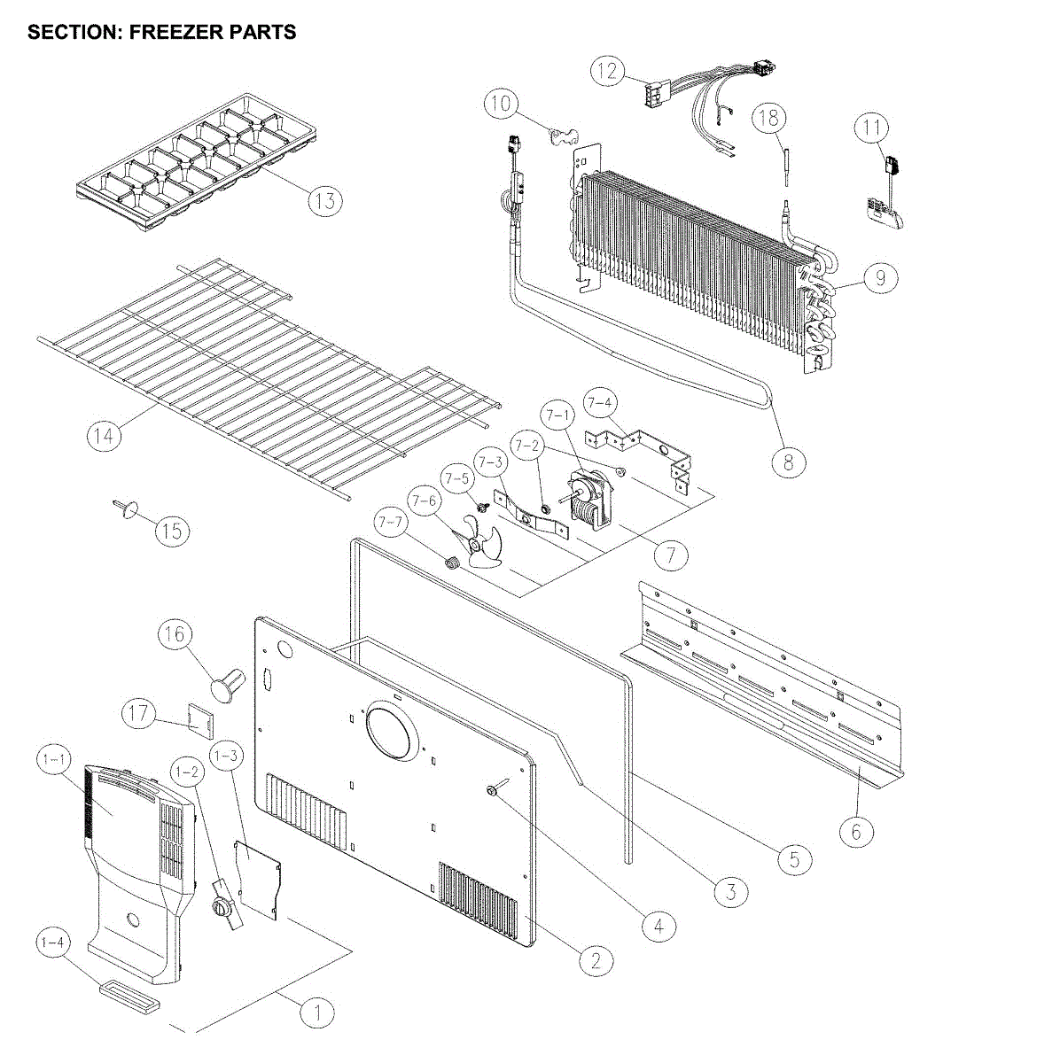 Parts for Kenmore 111.61202713 (11161202713, 111 61202713): Freezer Parts