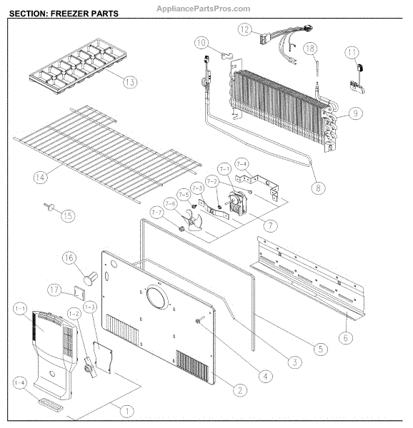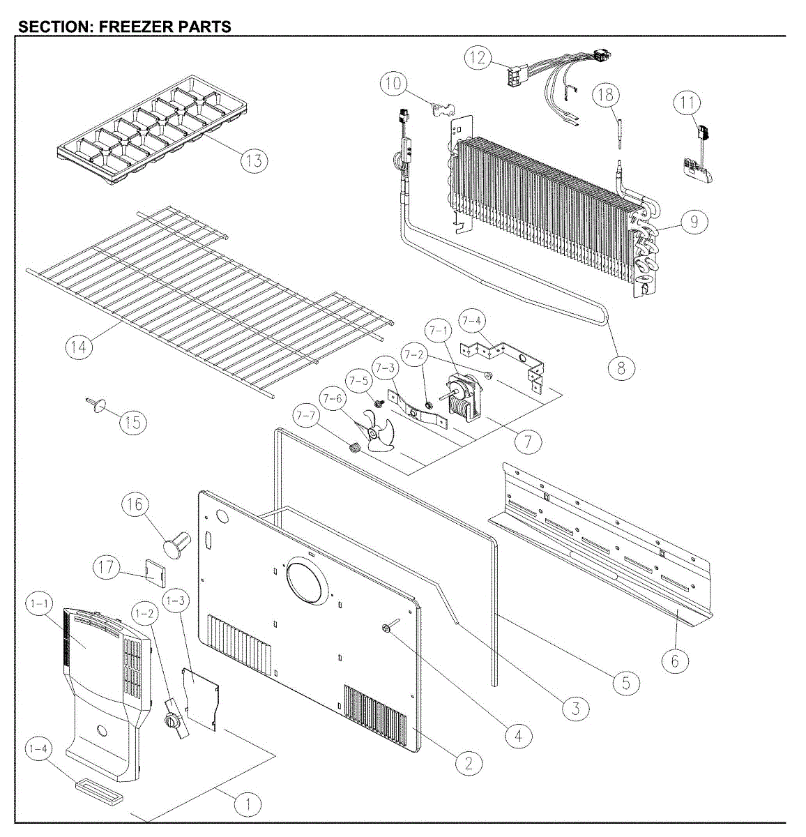 Parts for Kenmore 111.71219613 (11171219613, 111 71219613): Freezer Parts