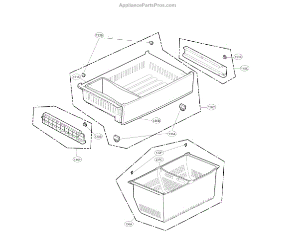 Replaces cracked or broken refrigerator drawer tray assembly. Restores smooth drawer gliding, proper support for food storage, and compartment organization.