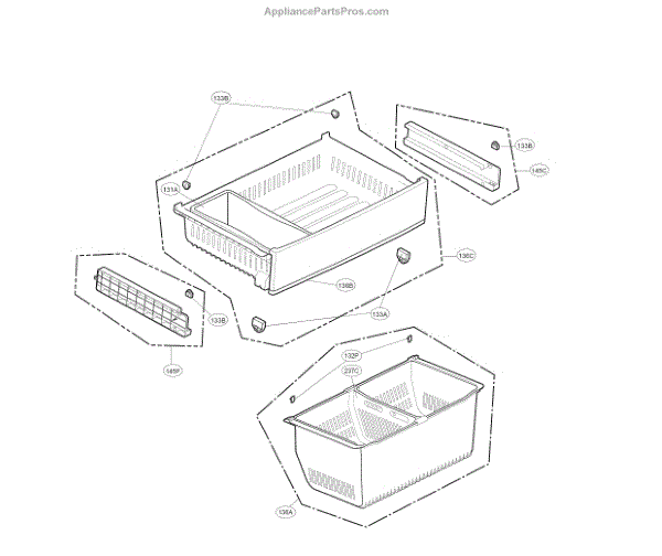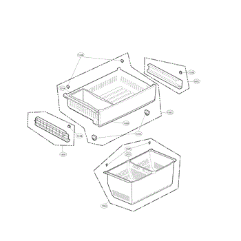 This refrigerator Drawer Tray Assembly forms the shelf/frame that supports a storage drawer. Replacing a cracked or broken tray restores smooth drawer movement, proper support for food items, and organization inside the compartment.