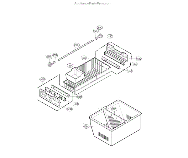 • Forms the bottom of a refrigerator drawer to support produce, packaged foods and other items.