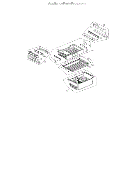 This slide rail supports and guides a refrigerator drawer so it opens and closes smoothly. Replacing a worn or cracked rail restores proper alignment and glide to prevent bins from binding, tilting, or popping out of the track.