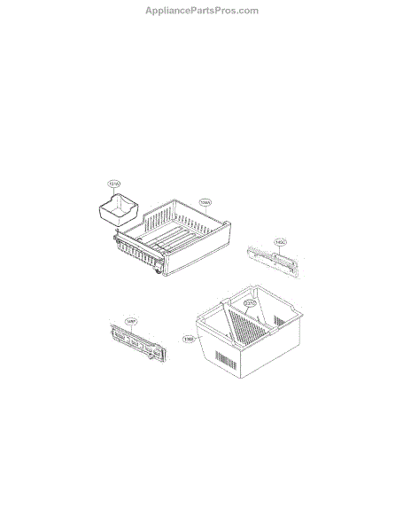 This is the ice bucket that stores ice dispensed by your refrigerator's ice maker. A cracked, warped, or stuck bin can jam the auger or spill ice, leading to poor dispensing and messy freezers.