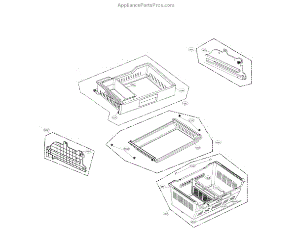 The Shelf Assembly is an OEM replacement part for LG refrigerators. It provides a movable shelf surface for organizing and storing items in the refrigerator or freezer compartment. Symptoms of a bad shelf assembly include: