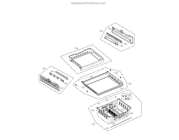 Replacement drawer tray assembly that restores stable support and containment for an interior refrigerator drawer. Helps keep stored items organized and restores proper seating of the drawer. What it does: