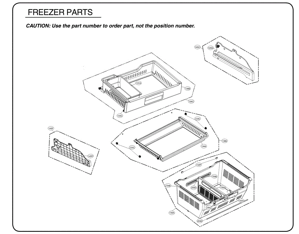 The Shelf Assembly is an OEM replacement part for LG refrigerators. It provides a movable shelf surface for organizing and storing items in the refrigerator or freezer compartment. Symptoms of a bad shelf assembly include:
