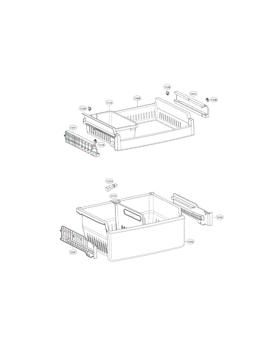 • Holds and organizes frozen foods within the freezer drawer