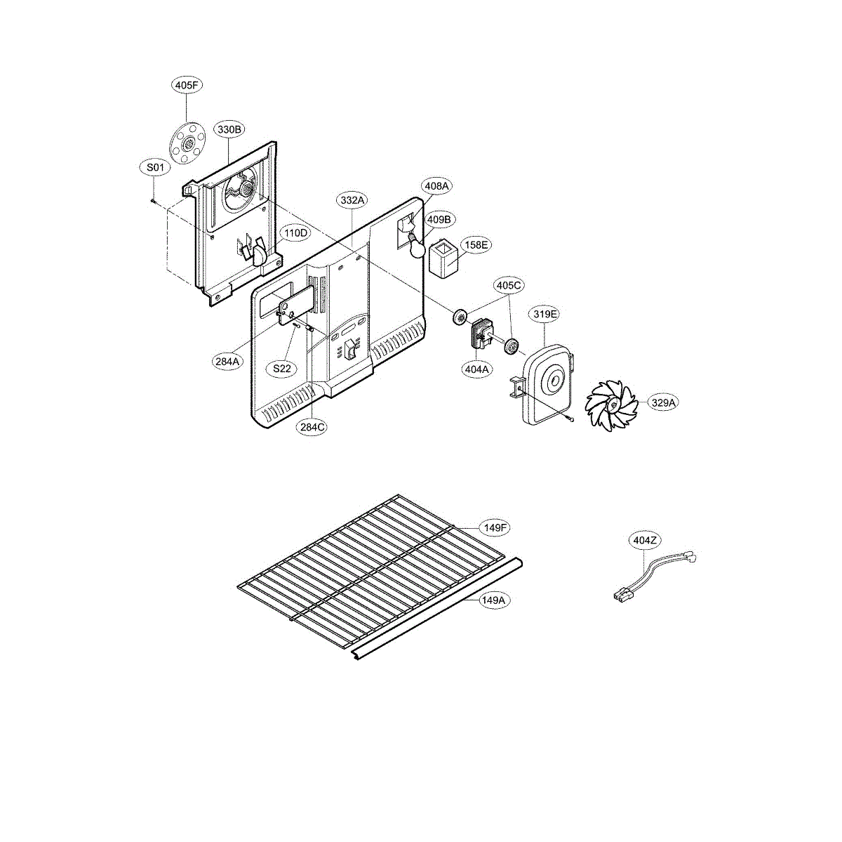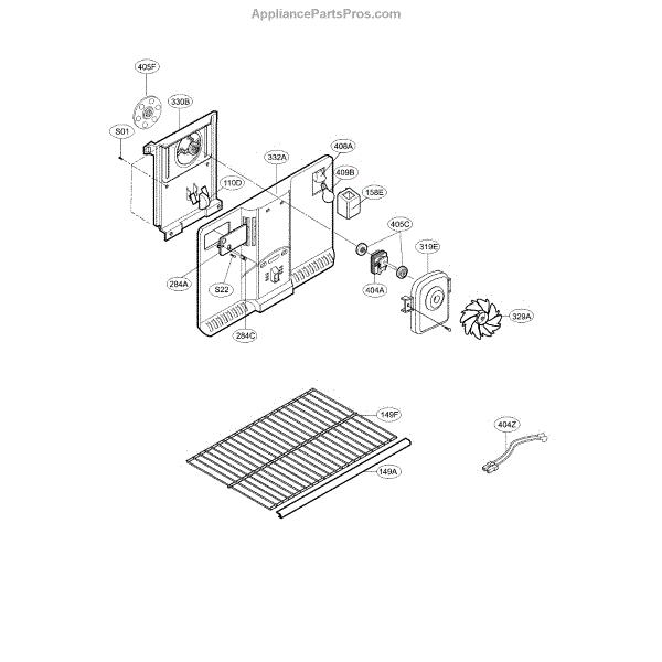 This fan assembly circulates air through the appliance so coils and internal components operate at the proper temperature. Replacing a failed or noisy fan can restore airflow and help prevent performance issues caused by weak circulation.