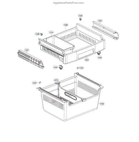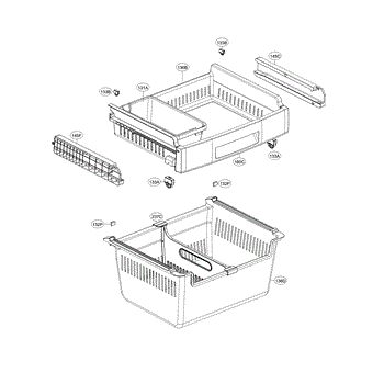 Clear plastic crisper drawer that holds and organizes produce in your refrigerator. Replace if cracked, chipped, broken, or missing to restore storage.