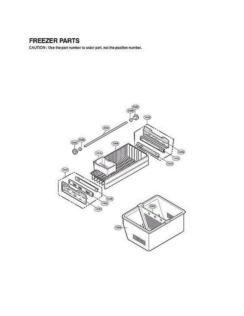 The Freezer Basket is an OEM replacement part for LG French door refrigerators. Located inside the bottom of the freezer compartment, this removable basket provides convenient storage and organization of meats, frozen vegetables, and other bulk items. Causes may involve impact or puncture damage, excessive bending resulting in fractures, or broken retaining tabs that secure the basket in place. Symptoms of a damaged freezer basket include: