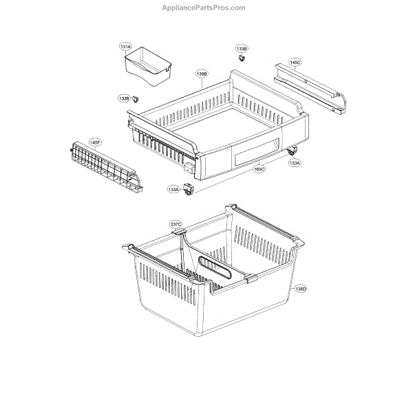 The Crisper Drawer Cover Frame Assembly is an OEM part for LG refrigerators. This assembly includes the frame that supports the crisper drawer, allowing for smooth sliding and secure placement of the drawer within the refrigerator. It plays a crucial role in the organization and accessibility of your refrigerator's contents, particularly fruits and vegetables, by providing a dedicated storage space that helps maintain optimal humidity levels.