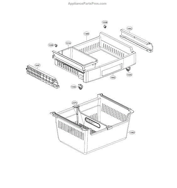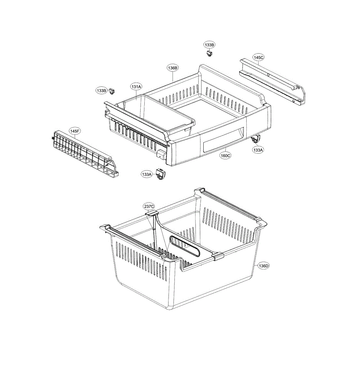 The Crisper Drawer Cover Frame Assembly is an OEM part for LG refrigerators. This assembly includes the frame that supports the crisper drawer, allowing for smooth sliding and secure placement of the drawer within the refrigerator. It plays a crucial role in the organization and accessibility of your refrigerator's contents, particularly fruits and vegetables, by providing a dedicated storage space that helps maintain optimal humidity levels.