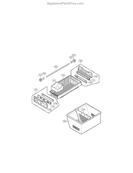 Bottom freezer basket for refrigerators. Organizes frozen foods in the lower freezer compartment. Replace if cracked, broken, or damaged from impact.