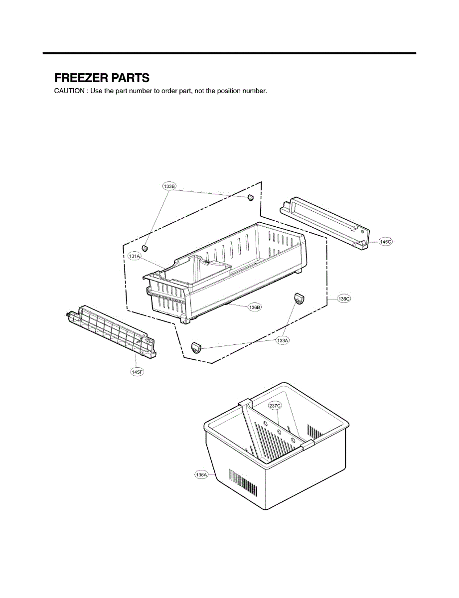 The Freezer Basket is an OEM replacement part for LG French door refrigerators. Located inside the bottom of the freezer compartment, this removable basket provides convenient storage and organization of meats, frozen vegetables, and other bulk items. Causes may involve impact or puncture damage, excessive bending resulting in fractures, or broken retaining tabs that secure the basket in place. Symptoms of a damaged freezer basket include:
