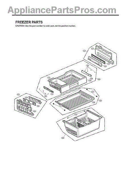 The Freezer Drawer Assembly is an OEM part for LG refrigerators. It comprises the complete pull-out drawer unit located in the bottom freezer compartment. The assembly includes integrated components like the basket, runners, glides, and heating elements.
