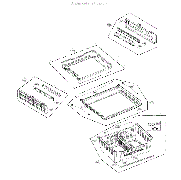 The Shelf Assembly is an OEM replacement part for LG refrigerators. It provides a movable shelf surface for organizing and storing items in the refrigerator or freezer compartment. Symptoms of a bad shelf assembly include: