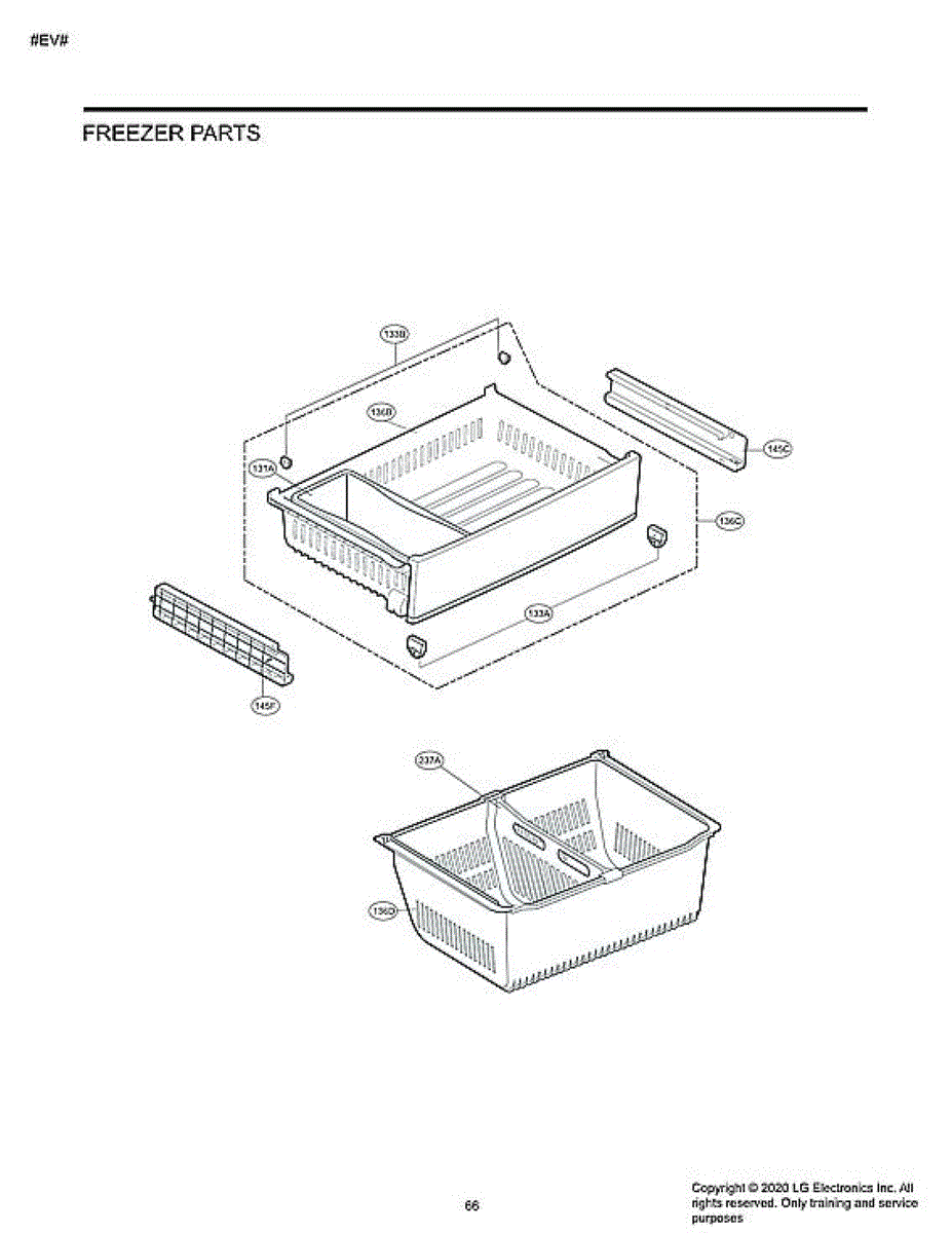 The Tray Assembly is an OEM part for LG refrigerators. This tray provides a dedicated storage compartment in the refrigerator's fresh food section. It holds fruits and vegetables separate from other items to help extend their freshness. Causes of a bad tray can include cracks or breaks in the plastic due to age or excessive weight, or damage to the mounting hardware that secures it in place. Symptoms of a bad tray include: