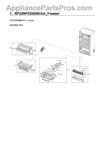 Replacement freezer drawer tray assembly for bottom-mount refrigerators. Restores organization when original is cracked, warped, or broken. Direct fit.
