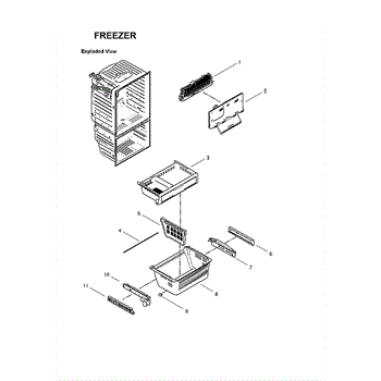 Freezer tray assembly organizes frozen items in the lower freezer drawer. Replace if cracked, broken, or warped. Direct fit for bottom-mount models.