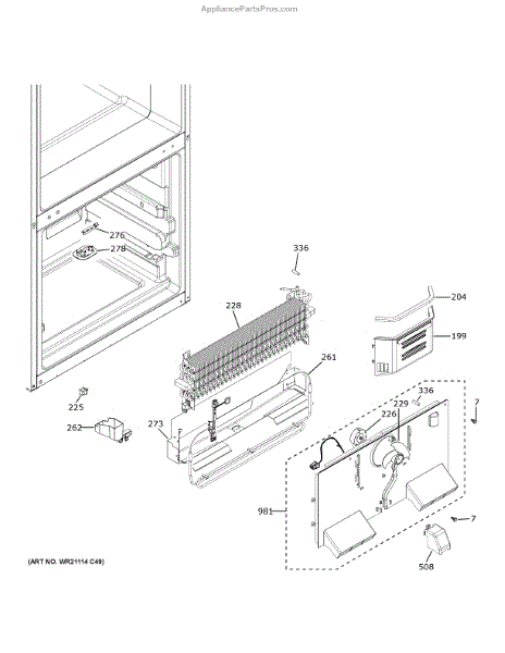 The Evaporator Cover and Fan is an OEM replacement part for GE refrigerators responsible for maintaining proper airflow and temperature regulation within the refrigerator's freezer compartment. The fan helps distribute the cold air while the cover protects the evaporator coils from any damage or obstruction.