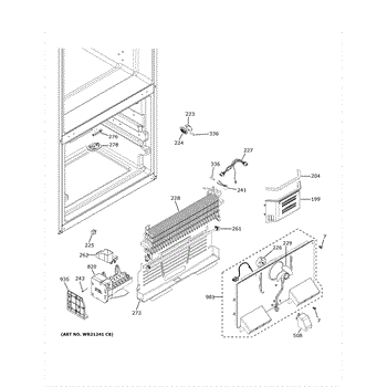 The Evaporator Cover and Fan is an OEM replacement part for GE refrigerators responsible for maintaining proper airflow and temperature regulation within the refrigerator's freezer compartment. The fan helps distribute the cold air while the cover protects the evaporator coils from any damage or obstruction.
