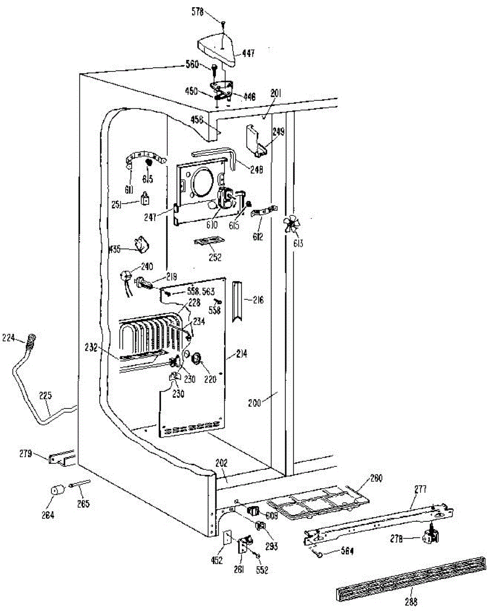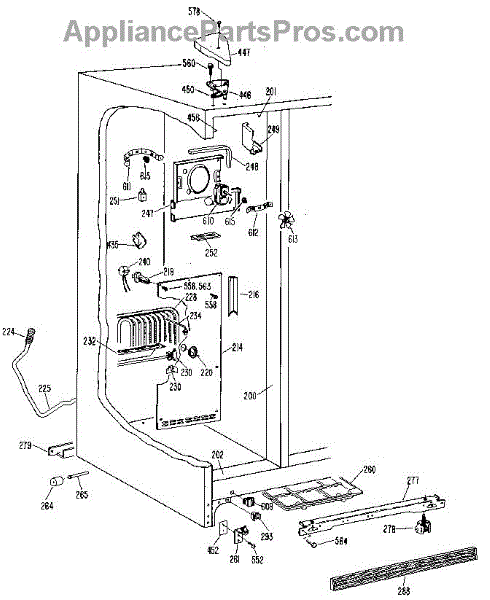 • Provides a mounting/sealing surface along the left side of the freezer compartment to help hold liners and components in place
