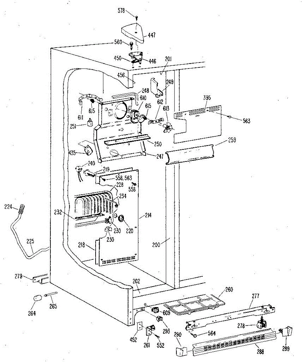 • Provides a mounting/sealing surface along the left side of the freezer compartment to help hold liners and components in place