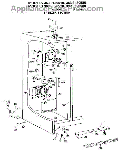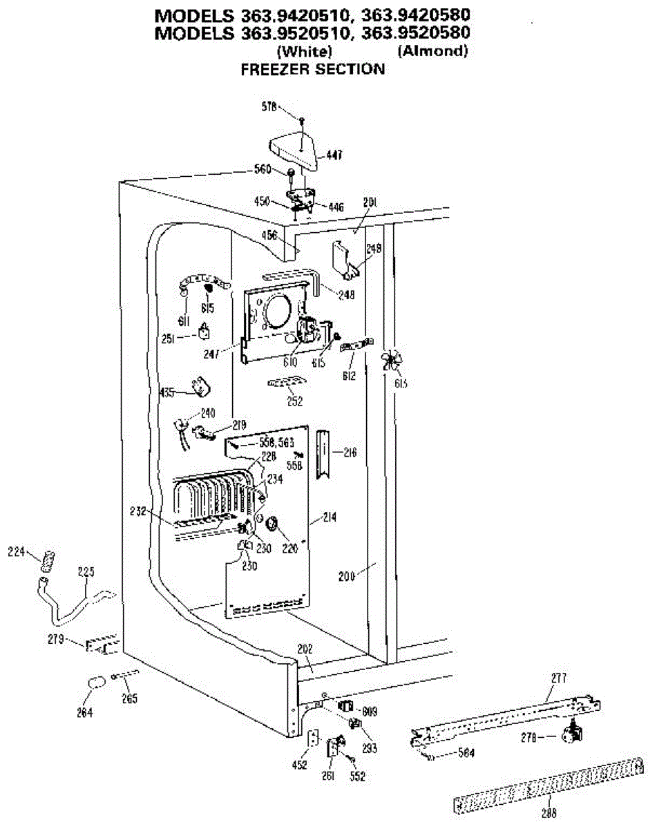 Parts for Kenmore 363.9420580 (3639420580, 363 9420580): Freezer Section Parts