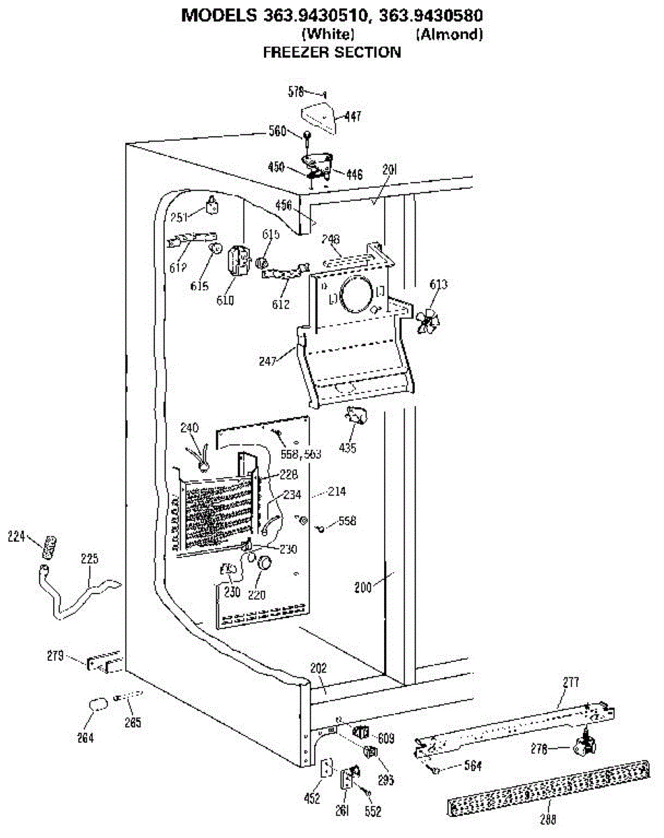 Parts for Kenmore 363.9430580 (3639430580, 363 9430580): Freezer Section Parts