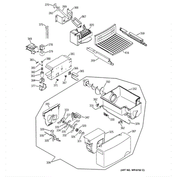 The Refrigerator Bucket and Auger Assembly is an OEM part for GE refrigerators. It is responsible for storing ice and dispensing it through the refrigerator's ice maker. The auger, which is part of this assembly, rotates to push ice forward and dispense it when activated. This assembly ensures a consistent supply of ice and smooth dispensing operation.