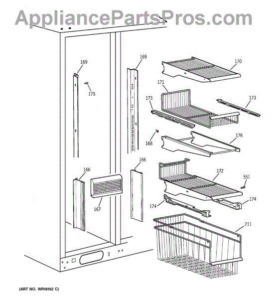 Parts for Ge TFH30PRTAAA: 04 - Freezer Section Parts