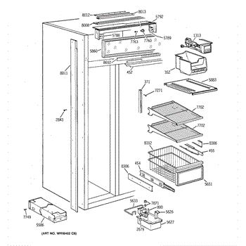 Freezer basket rear assembly for 42 and 36 inch GE/Monogram refrigerators.