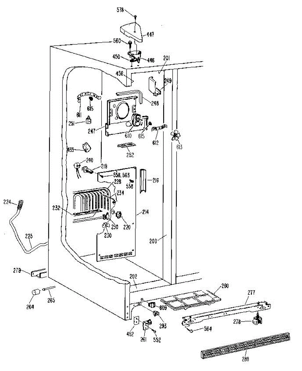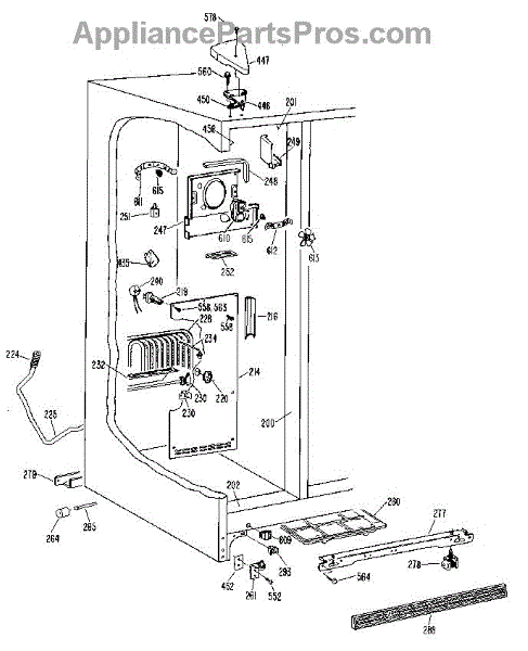 • Provides a mounting/sealing surface along the left side of the freezer compartment to help hold liners and components in place