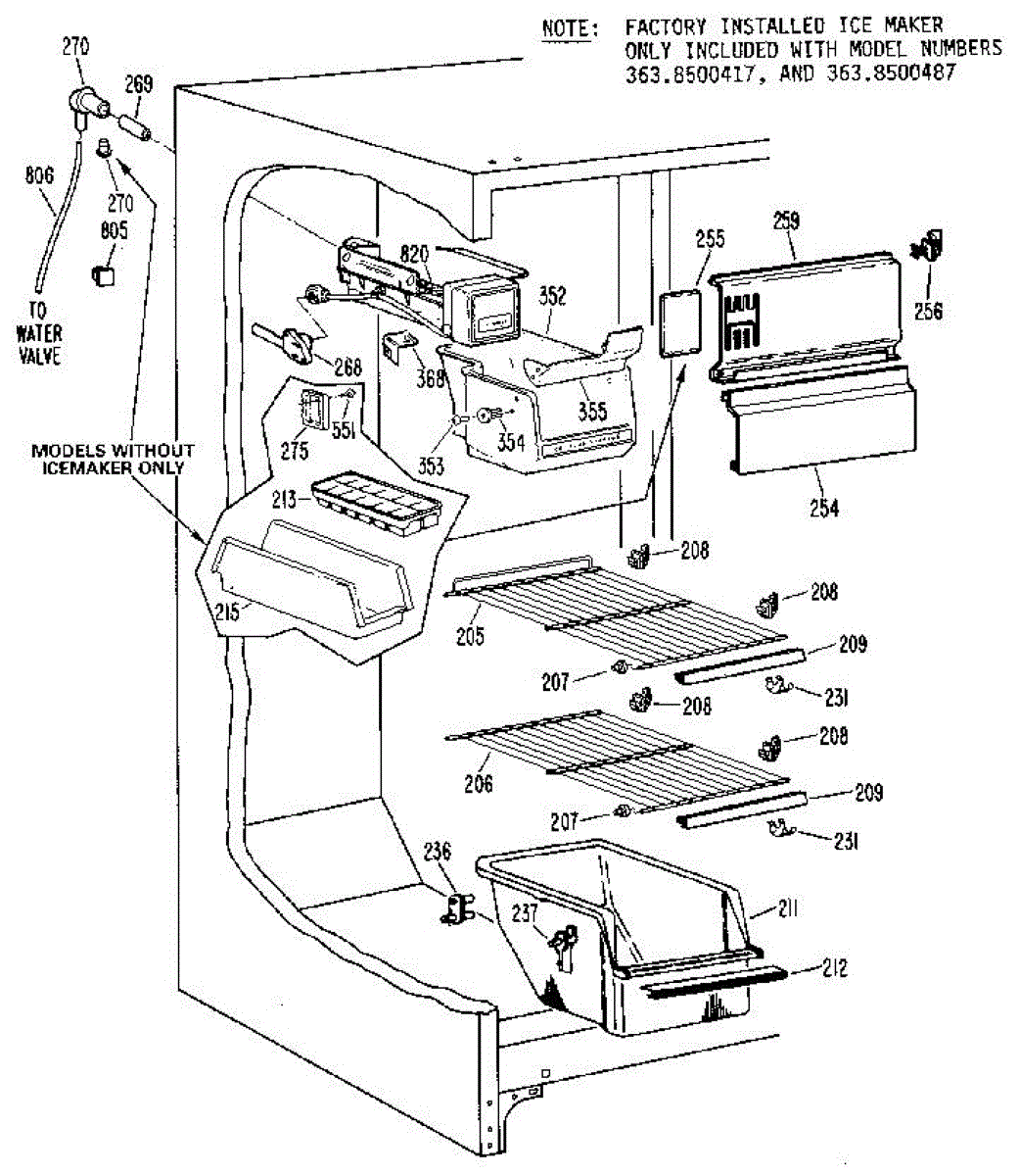 Parts for Kenmore 363.8500487 (3638500487, 363 8500487): Freezer Section Parts