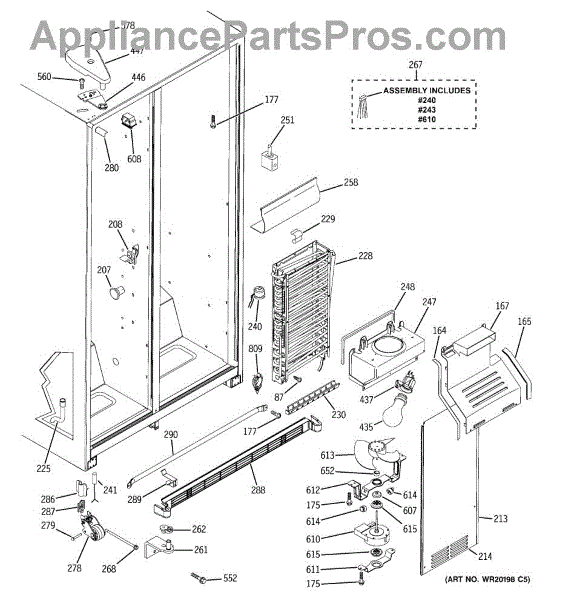 The Defrost Heater and Bracket Assembly is an OEM replacement part for GE refrigerators. It is responsible for facilitating the defrosting process, which is essential for maintaining proper cooling and preventing excessive ice buildup within the freezer compartment.