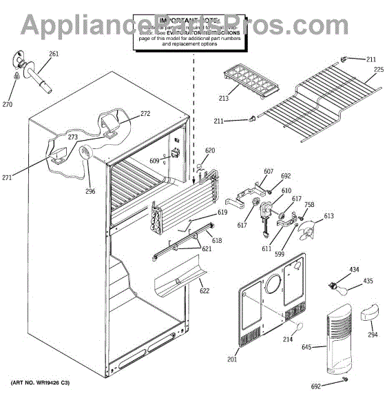Parts for Ge ETS18XBPERWW: 02 - Freezer Section Parts